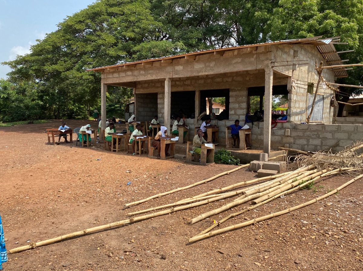 In December 2019, after a friend and I visited a school in Dodowa in the Greater Accra Region, we decided to get involved in helping with deprived schools in rural Ghana. During our visit we saw kids sitting in the hot sun (outside a classroom), writing an end of term examination. It was interesting seeing the situation in person.