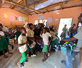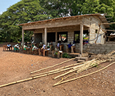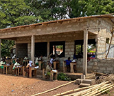 under trees in the sun attending classes. These classes are cancelled when there is bad weather, especially when it rains. Most of these schools have no supplies to help with learning.